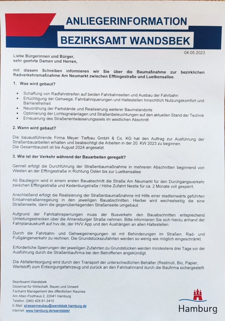 Link zu den Straßenbaustellen in Wandsbek: