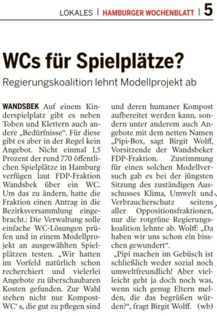 Daher begrüßen wir ausdrücklich den Modellversuch, den unsere lieben Nachbarn, die “Freunde des Eichtalparks e. V.”, mit Unterstützung der FDP-Fraktion Wandsbek (Birgit Wolff) vorantreiben.